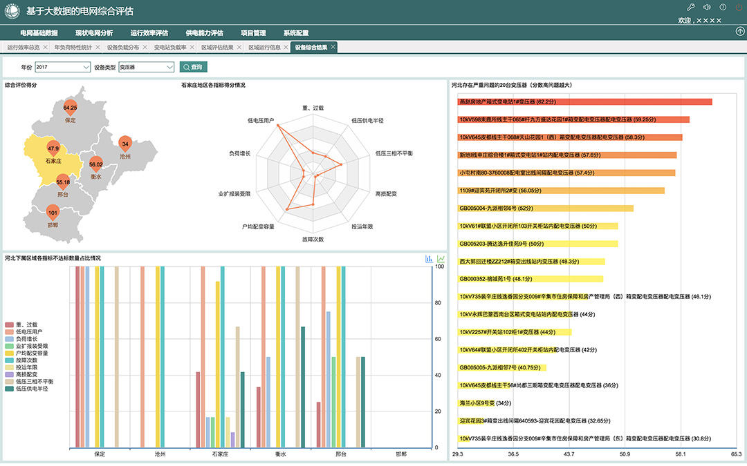 基于電網(wǎng)運檢、調(diào)度、發(fā)策、營銷等業(yè)務系統(tǒng)數(shù)據(jù),以配電網(wǎng)及配電設備為中心,以配電專業(yè)標準為依據(jù),構建配電網(wǎng)分析評價支撐平臺,對配電網(wǎng)及配電設備規(guī)劃、運行和維護進行狀態(tài)評估、安全能力評價、供電能力和運行水平智能分析評價,對配電網(wǎng)的規(guī)劃、建設、改造和運行維護提供輔助決策。